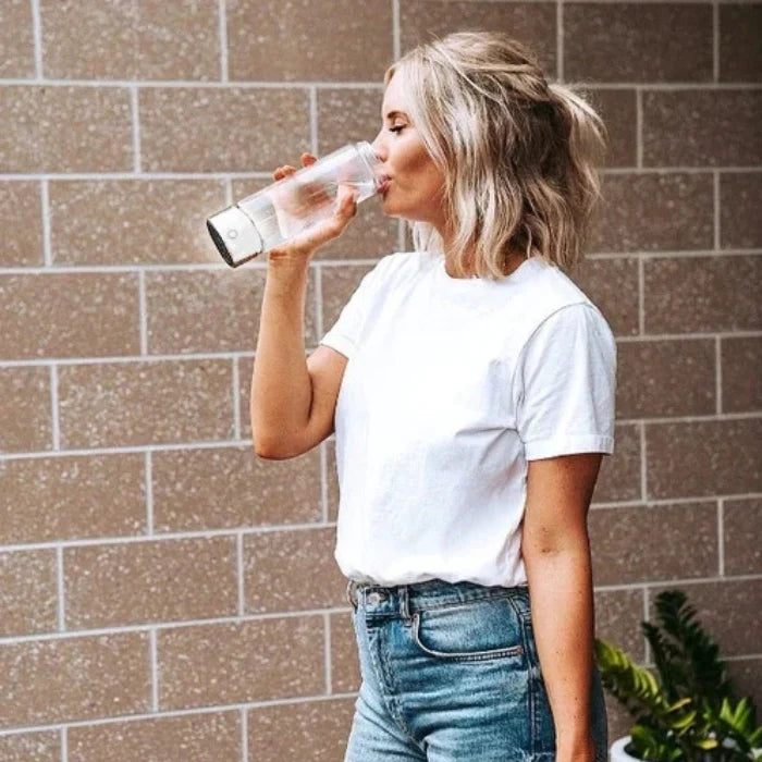 Onze fles voegt waterstof toe aan uw water, wat bewezen is om dieper te hydrateren, ontstekingen te bestrijden en oxidatieve stress te neutraliseren.